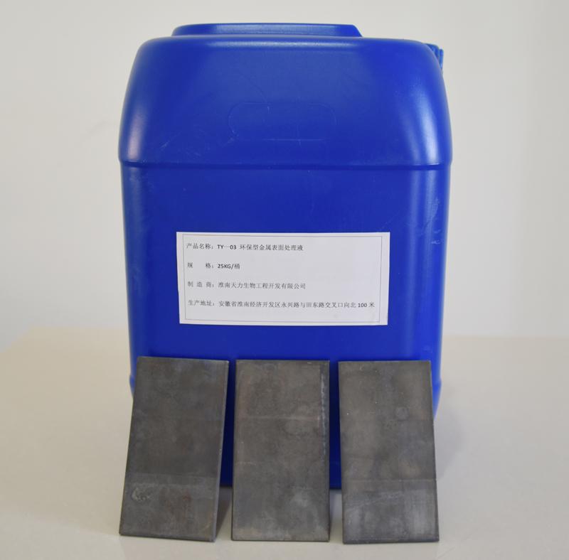 TY-03環(huán)保型金屬表面處理劑系淮南天力生物工程開發(fā)有限公司開發(fā),選用“植物提取物”及其衍生物的產(chǎn)品復(fù)合配制而成;成膜機(jī)理完全不同于傳統(tǒng)的鐵系、鋅系磷化液,為無(wú)縫隙整體成膜,膜薄,結(jié)合力強(qiáng)。顛覆了目前市場(chǎng)上硅烷和陶化成膜機(jī)理。鏡檢、杯凸實(shí)驗(yàn),劃痕實(shí)驗(yàn),鹽霧試驗(yàn)和水腐蝕實(shí)驗(yàn)效果理想。